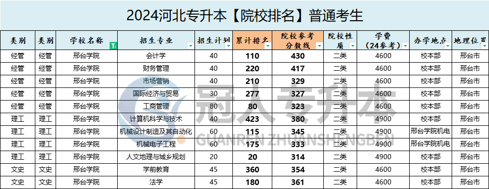 邢臺學院屬于二類公辦院校。2025年邢臺學院專升本數據還沒有公布,可以參考2024年邢臺學院專升本數據信息。