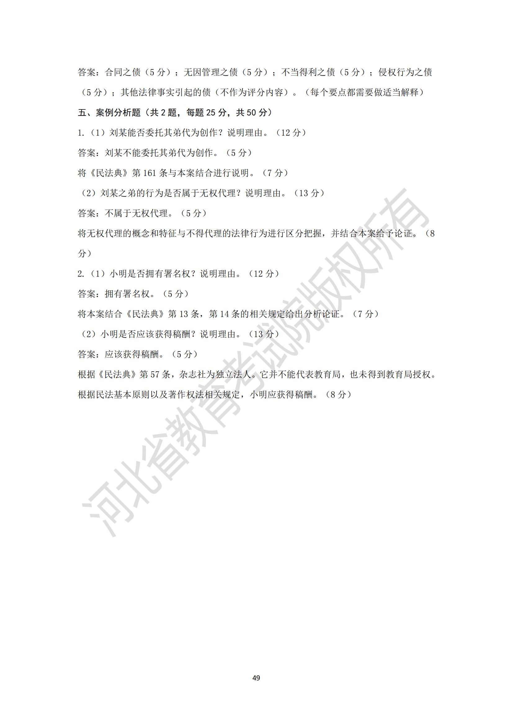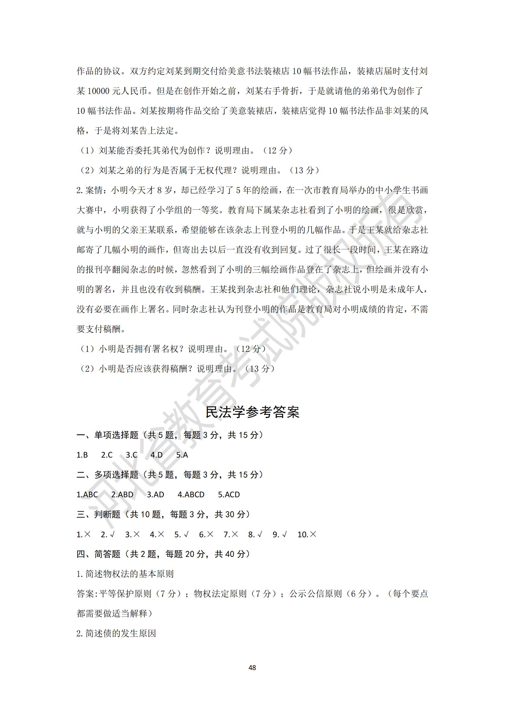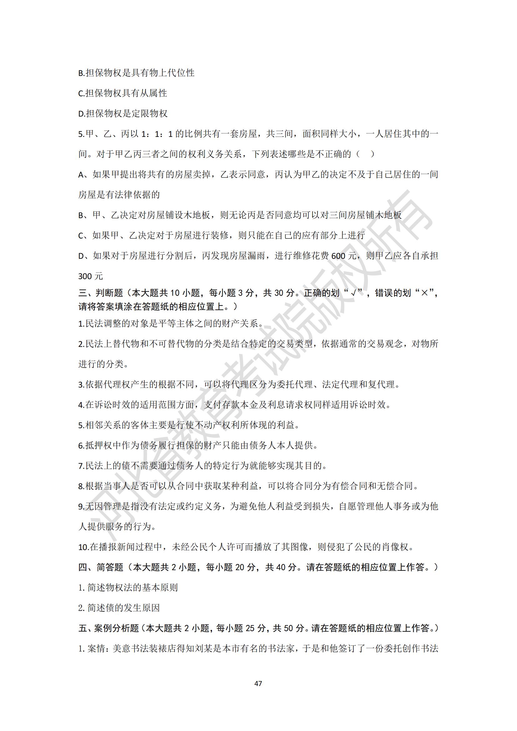 河北省普通高等學校專升本考試民法學模擬試卷及參考答案