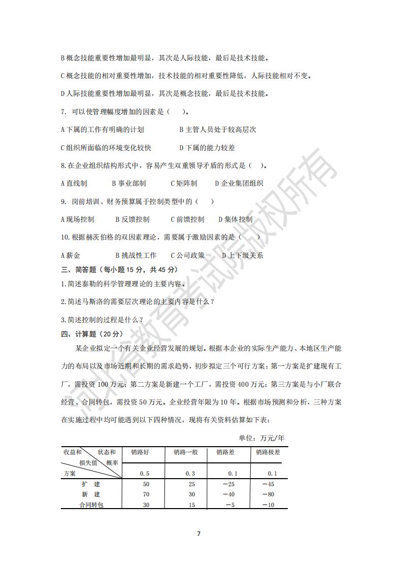河北省普通高等學校專升本考試管理學原理模擬試卷及參考答案