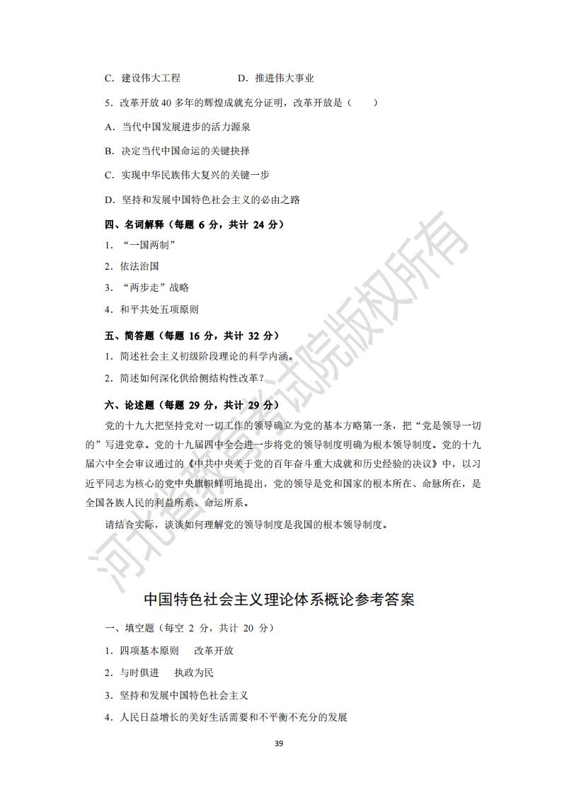 河北省普通高等學校專升本考試中國特色社會主義理論體系概論模擬試卷及參考答案