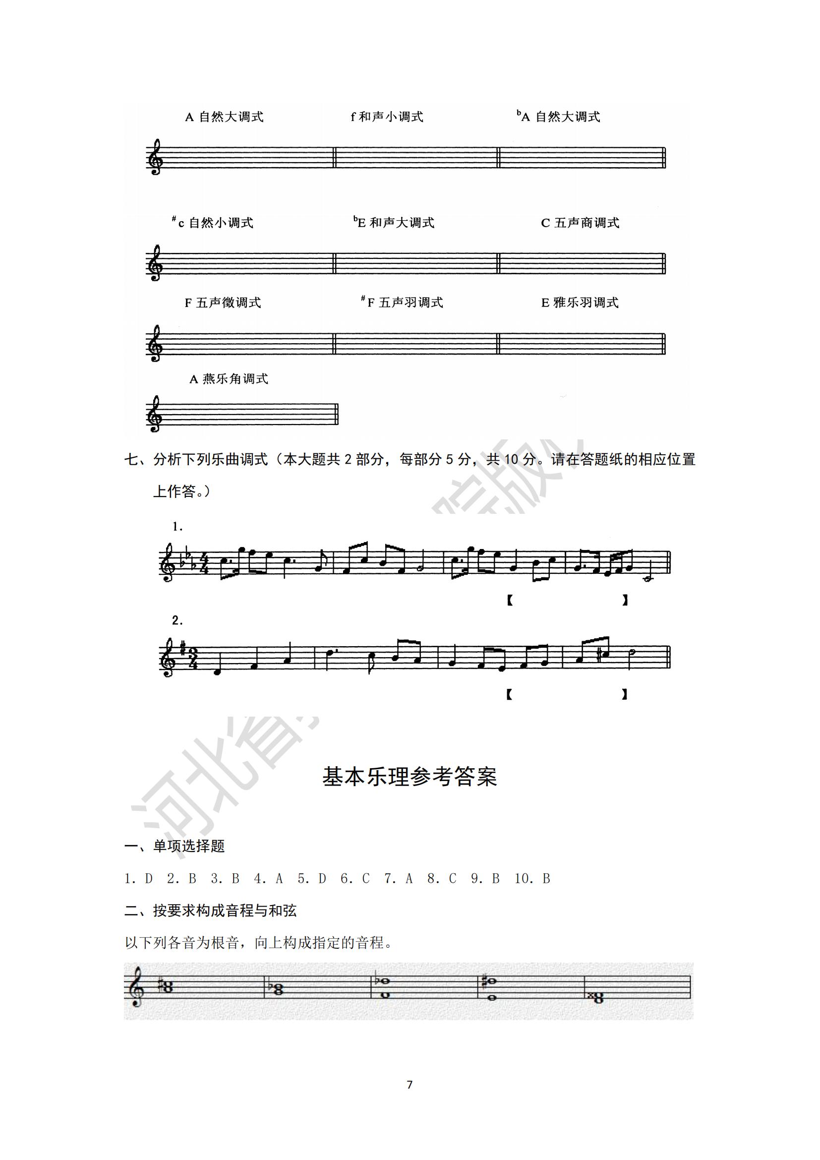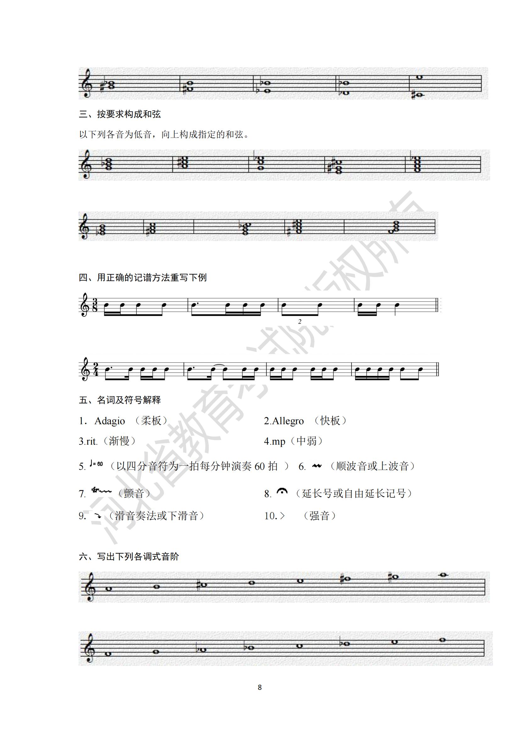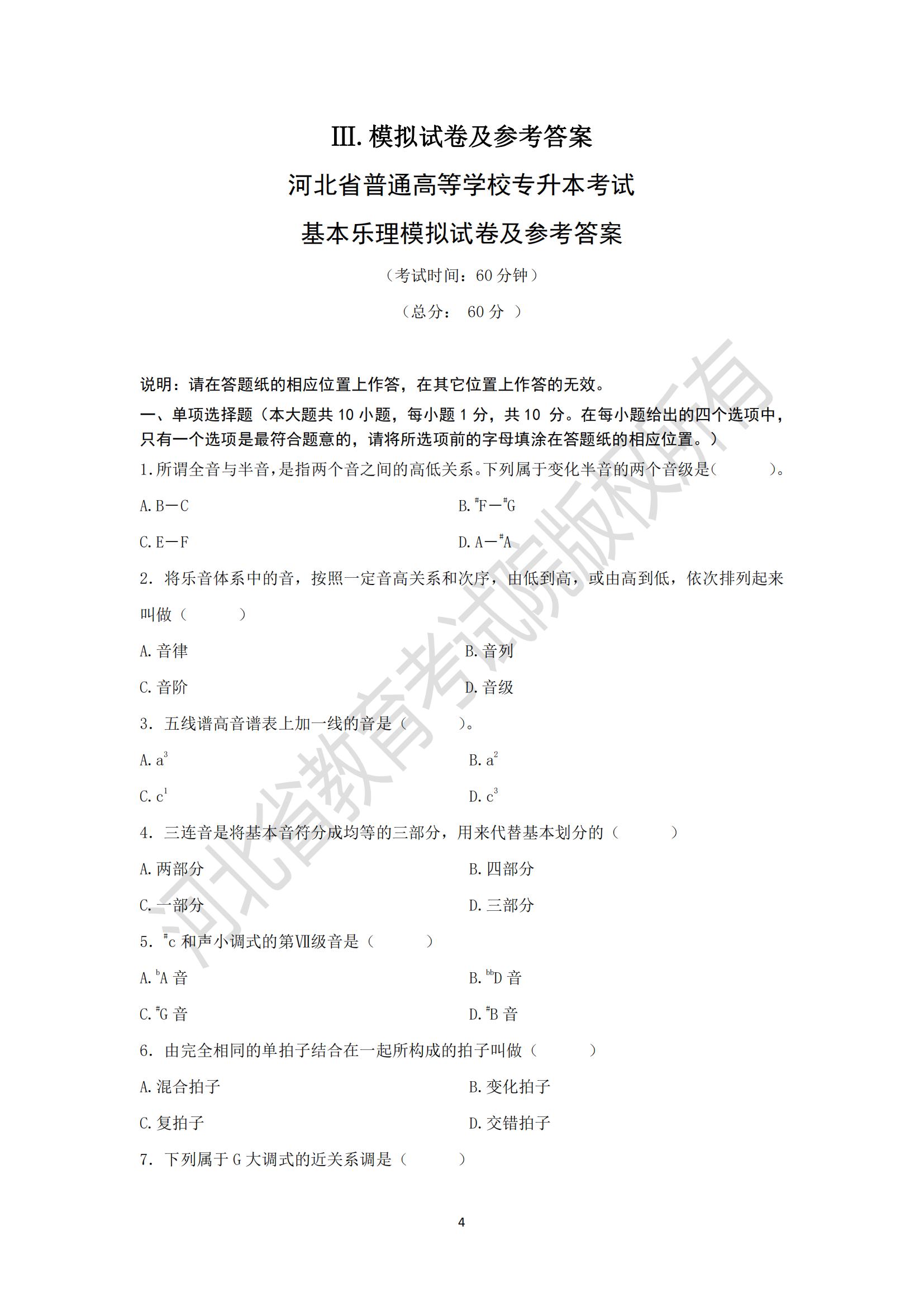 2025年河北省專升本考試藝術(shù)類基本樂理模擬試卷及參考答案