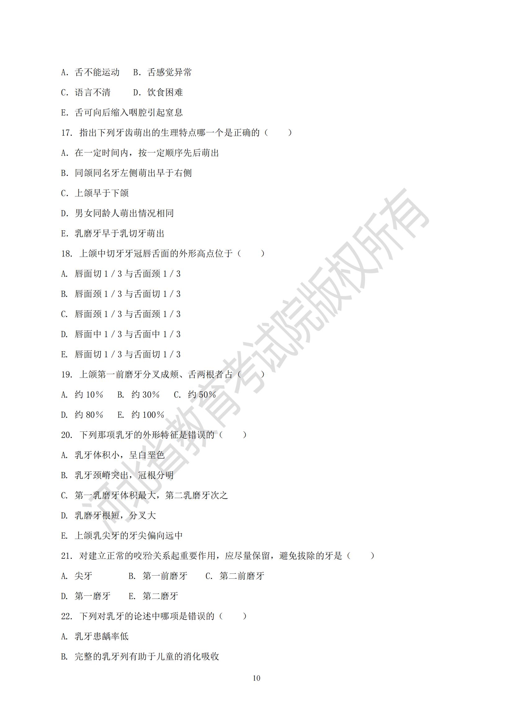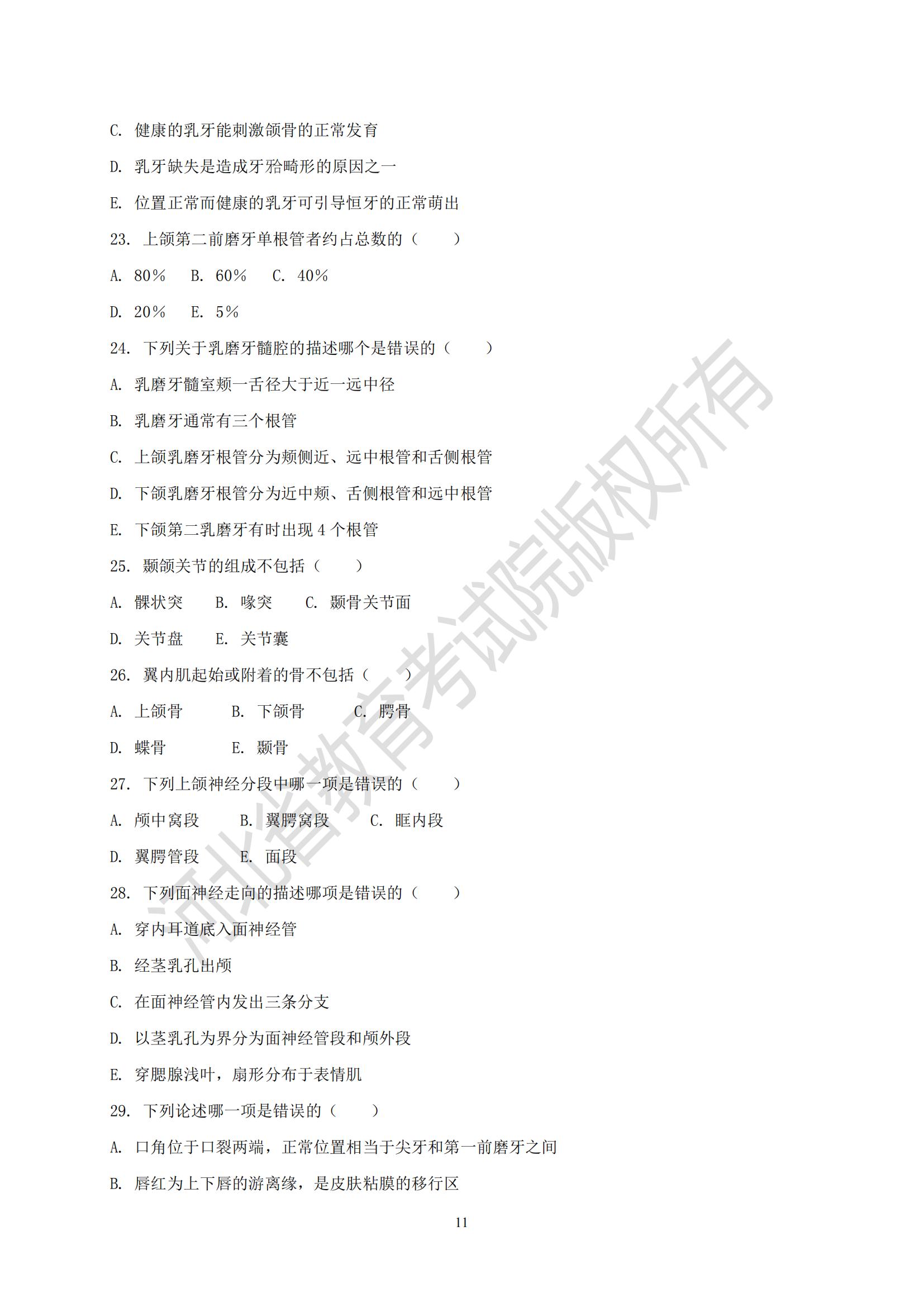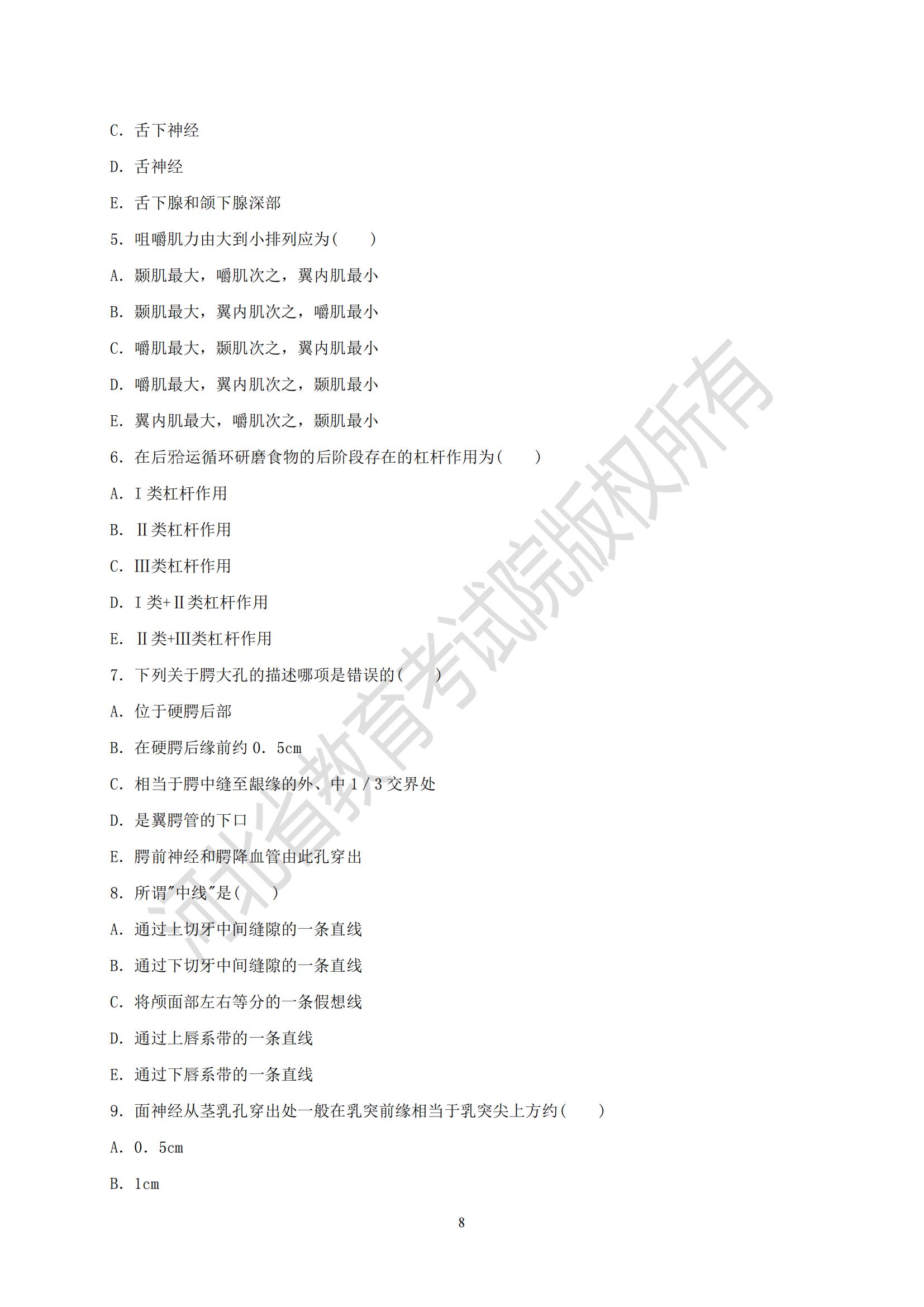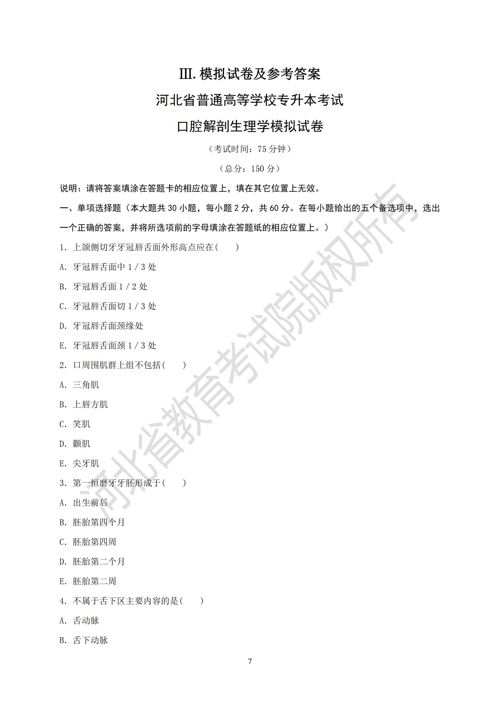 2025年河北省專升本考試醫(yī)學(xué)類口腔解剖生理學(xué)模擬試卷及參考答案: