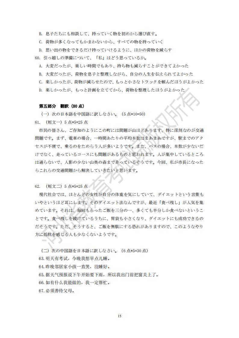 2024年河北專升本考試日語專業模擬試卷及參考答案