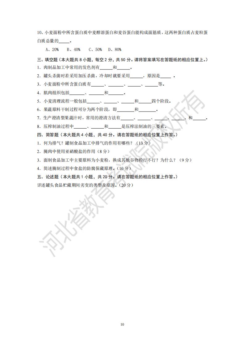 24年河北統招全日制專升本考試食品工藝學模擬試卷及參考答案