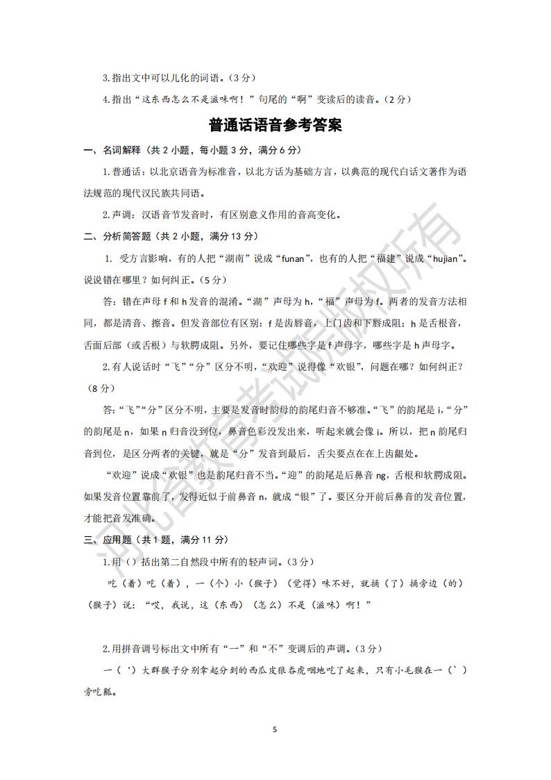 1. 受方言影響,有的人把“湖南”說成“funan”,也有的人把“福建”說成“hujian”。說說錯在哪里?如何糾正。(5 分)