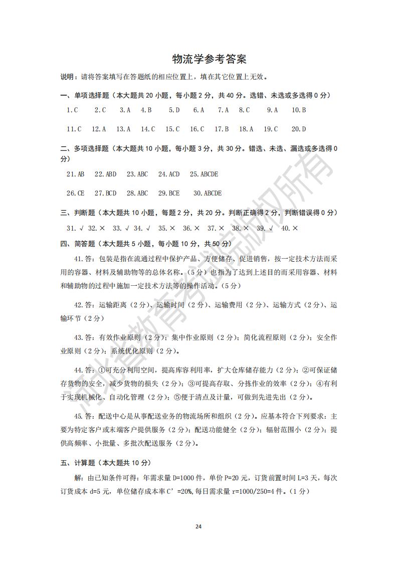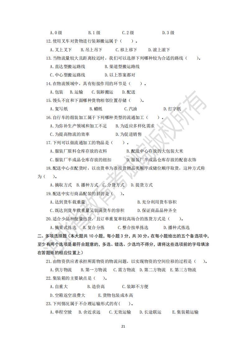 2025河北省專升本考試物流學模擬真題及參考答案