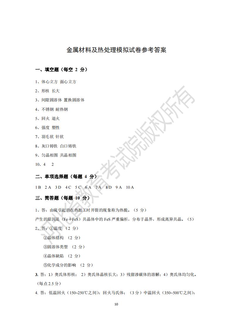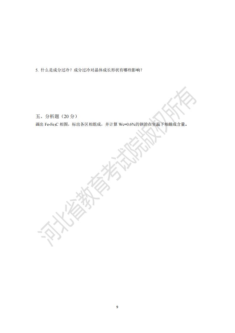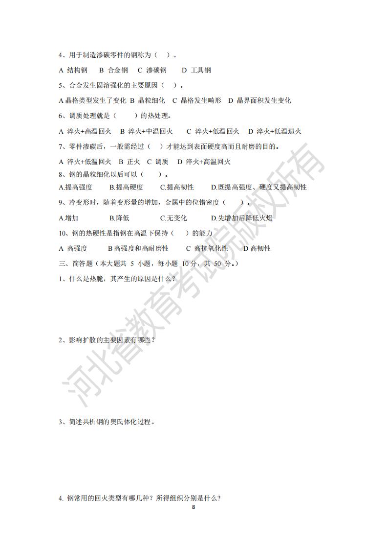 河北省普通高等學校專升本考試金屬材料及熱處理模擬試卷