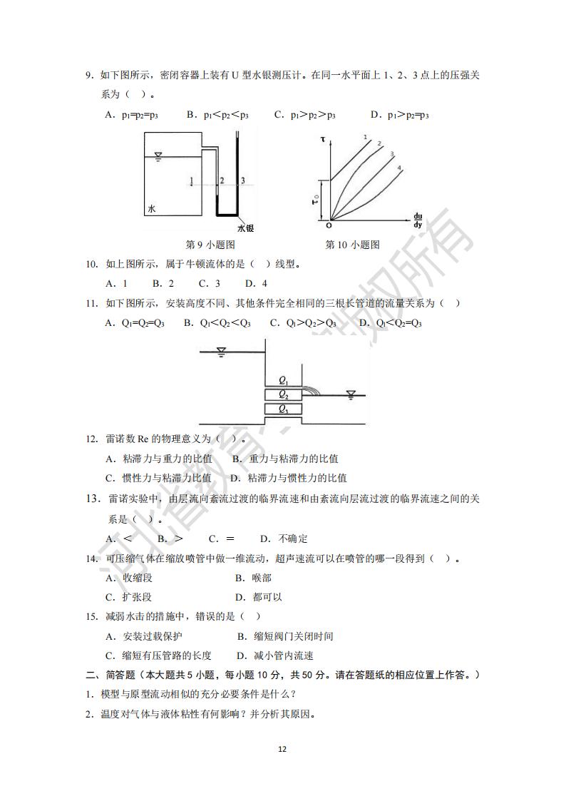 河北專升本工程流體力學(xué)模擬試卷及參考答案
