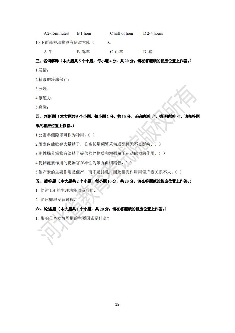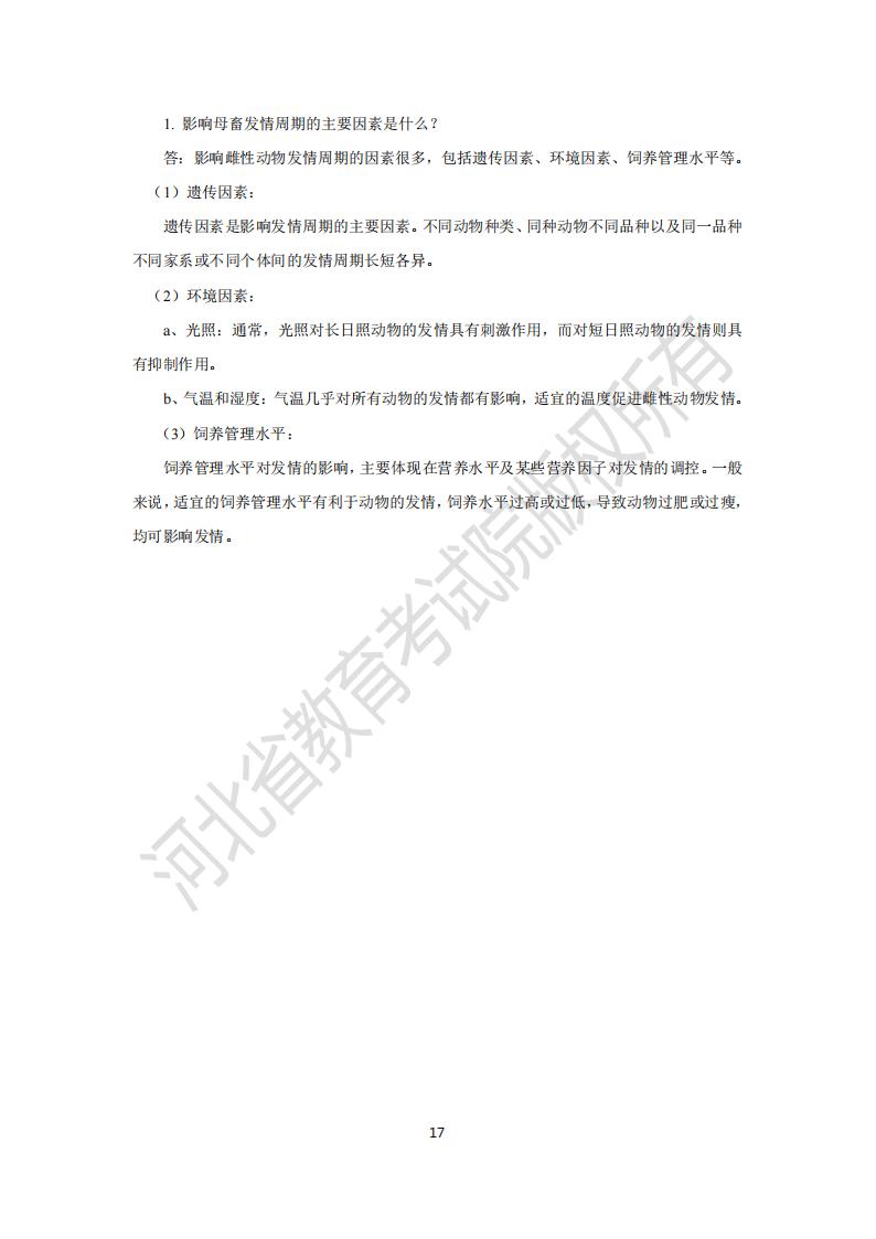 河北省專升本考試動物繁殖學模擬試卷及參考答案