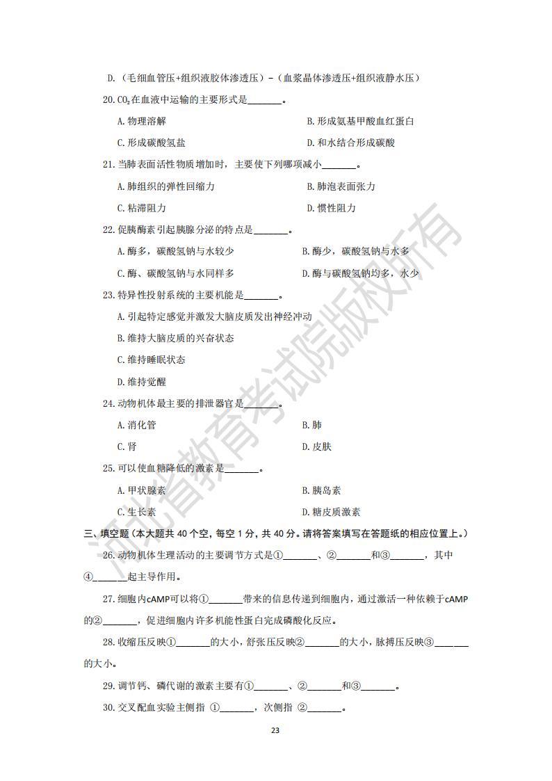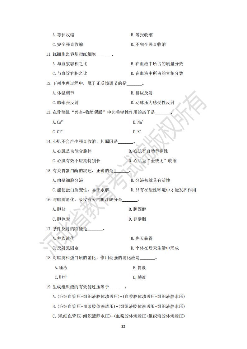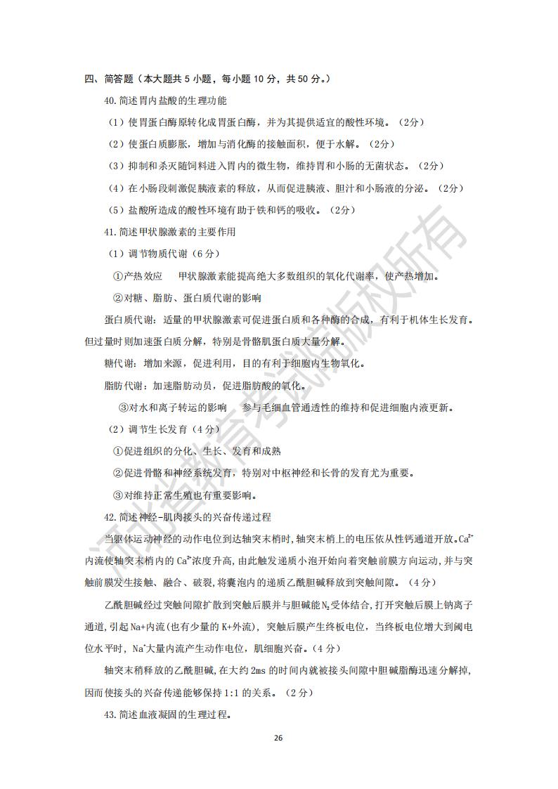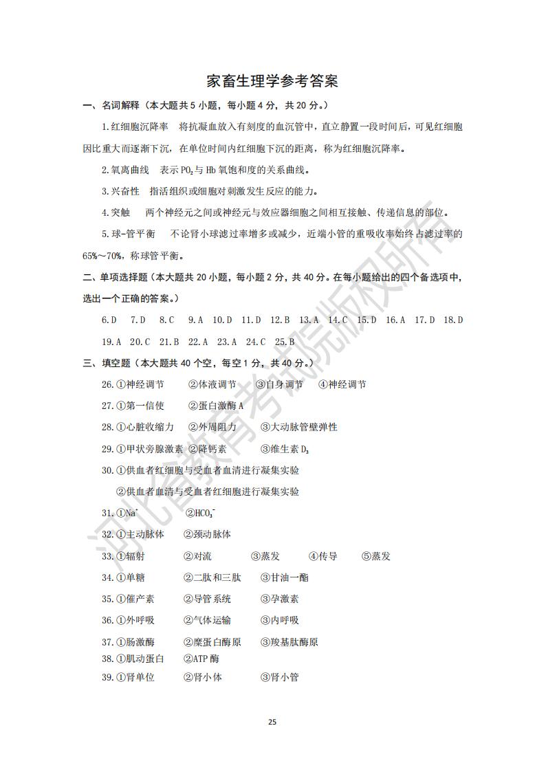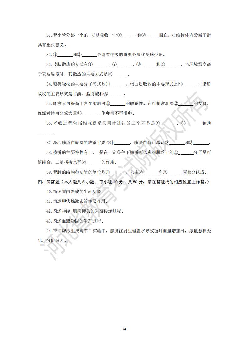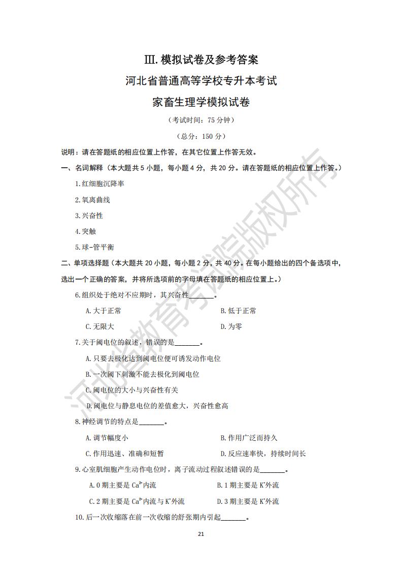 河北省普通高等學校專升本考試 家畜生理學模擬試卷及參考答案