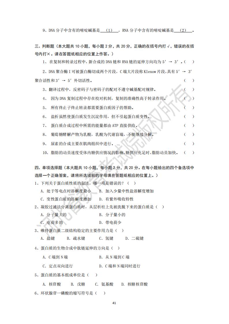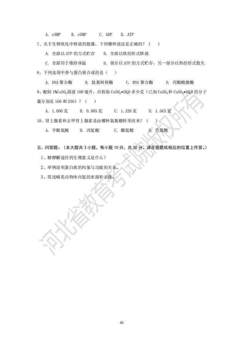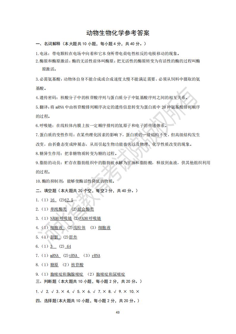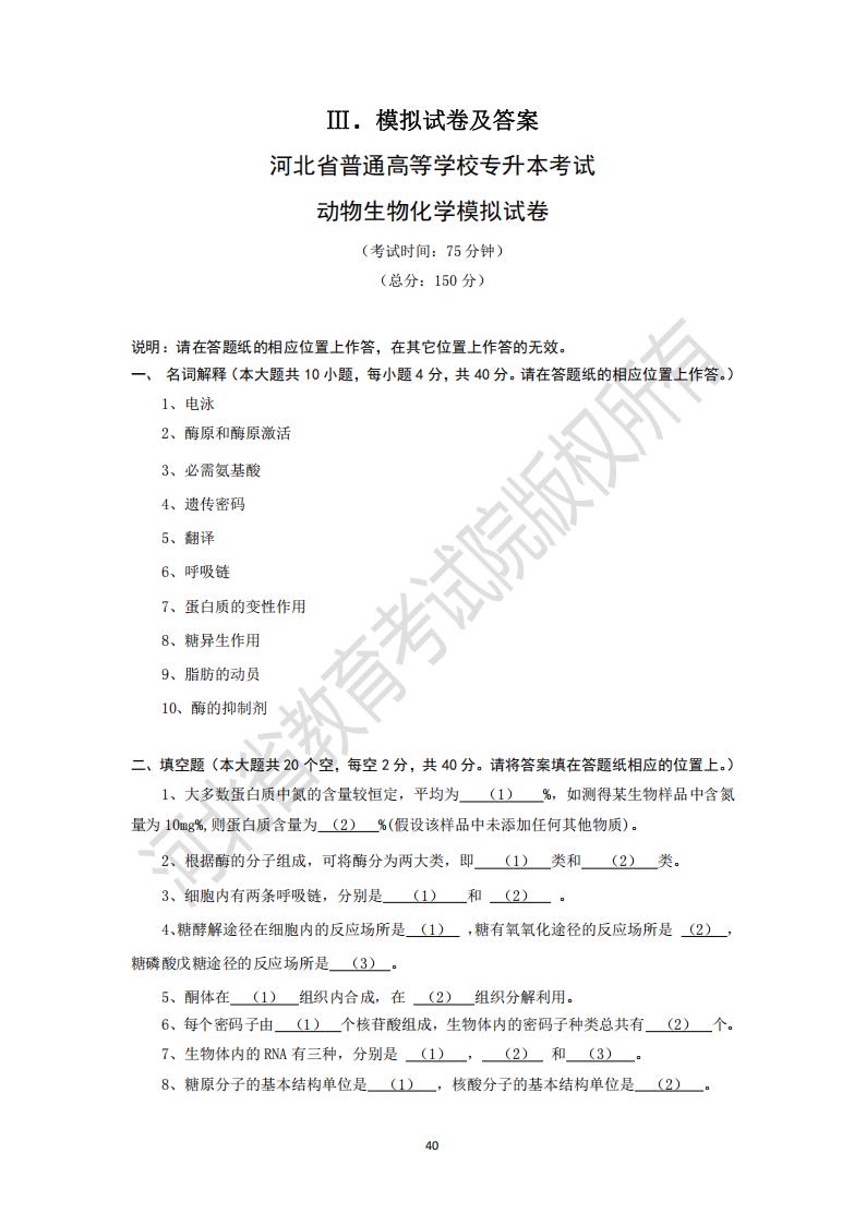 河北省普通高等學(xué)校專升本考試動(dòng)物生物化學(xué)模擬試卷
