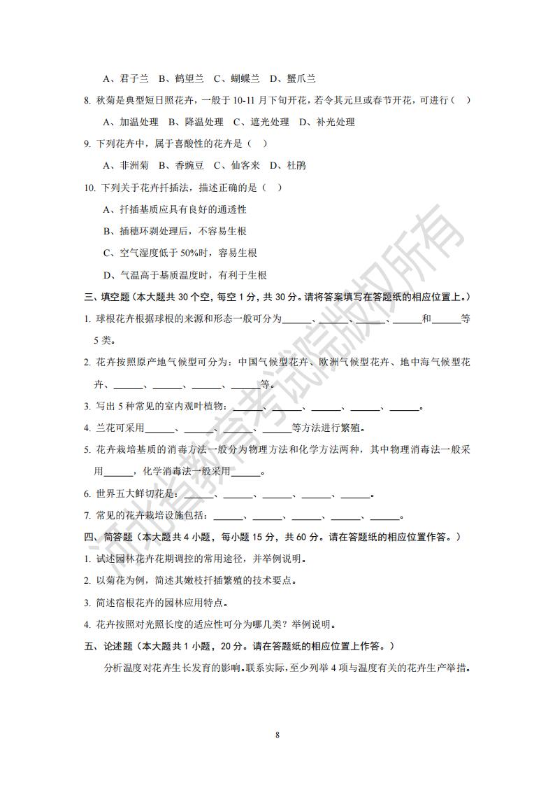 河北省普通高等學(xué)校專(zhuān)升本考試花卉學(xué)模擬試卷及參考答案