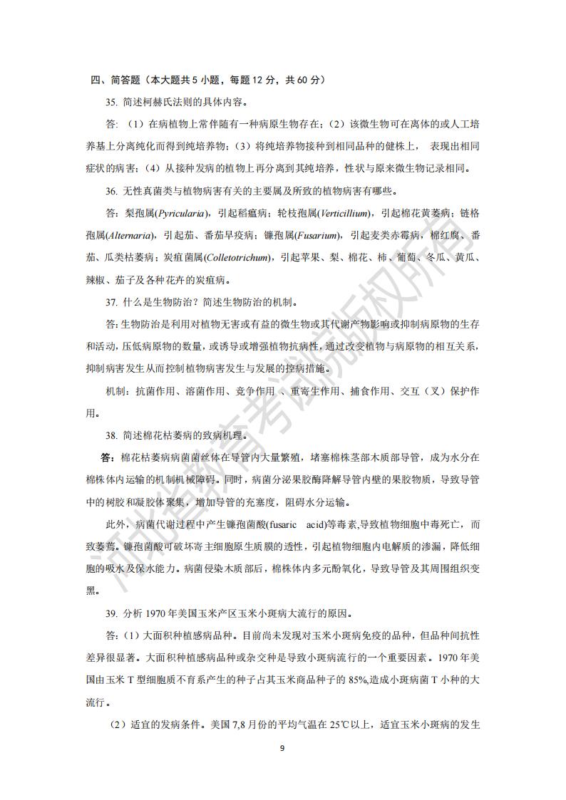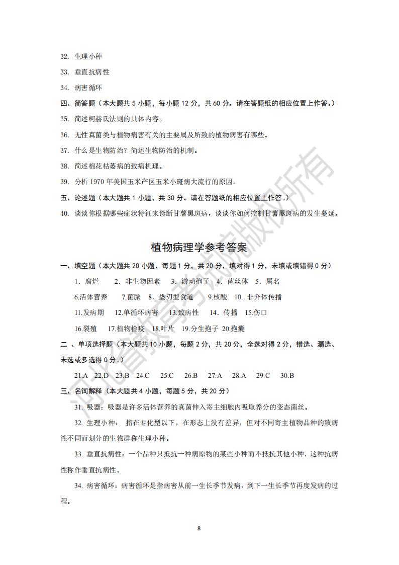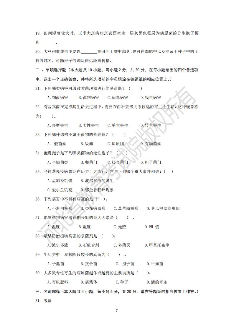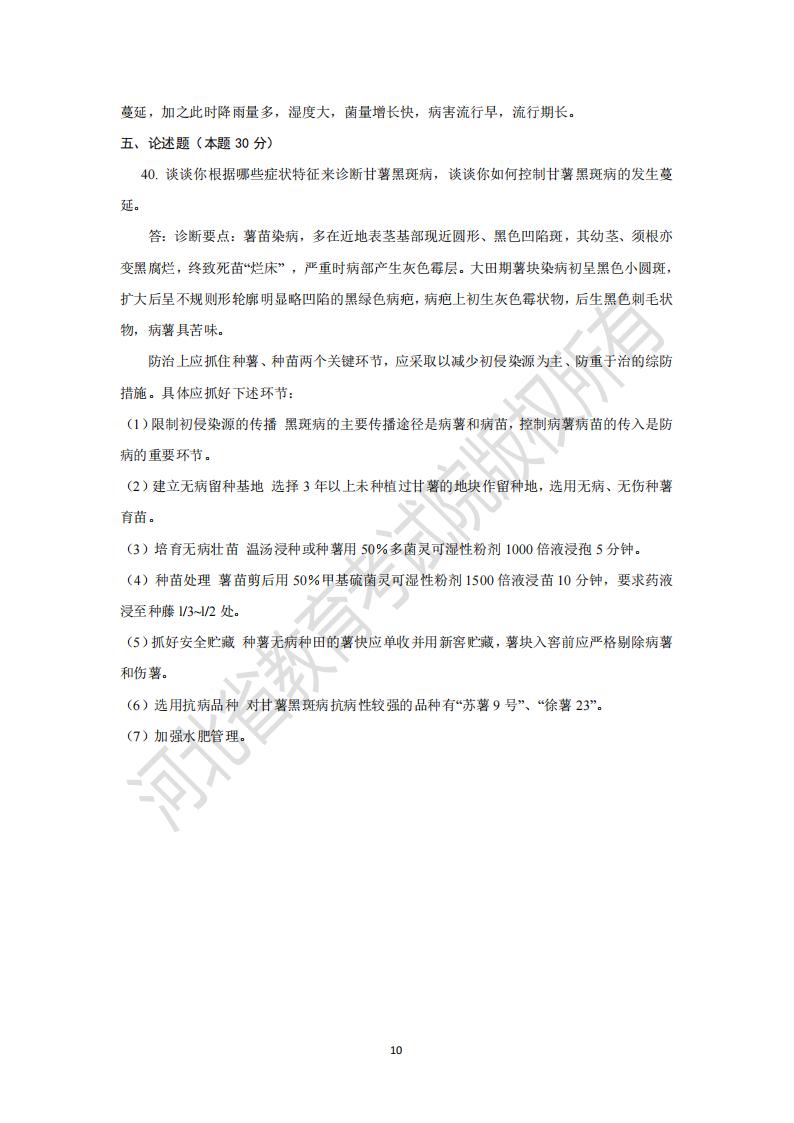 河北省普通高等學校專升本考試植物病理學模擬試卷及參考答案