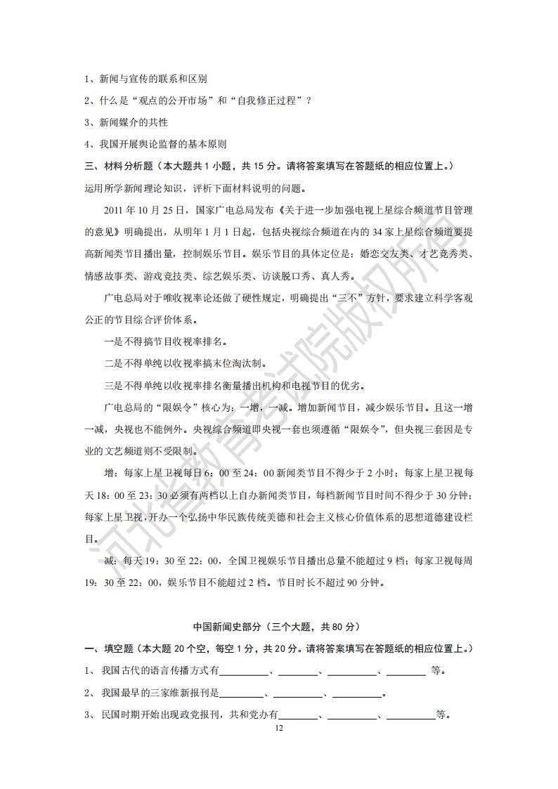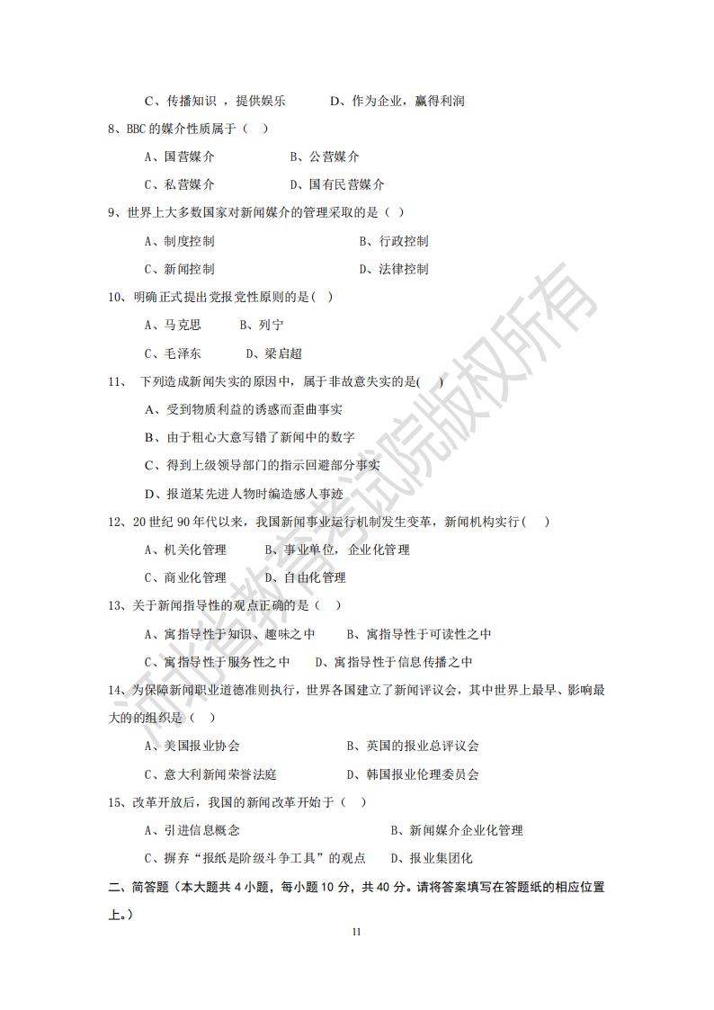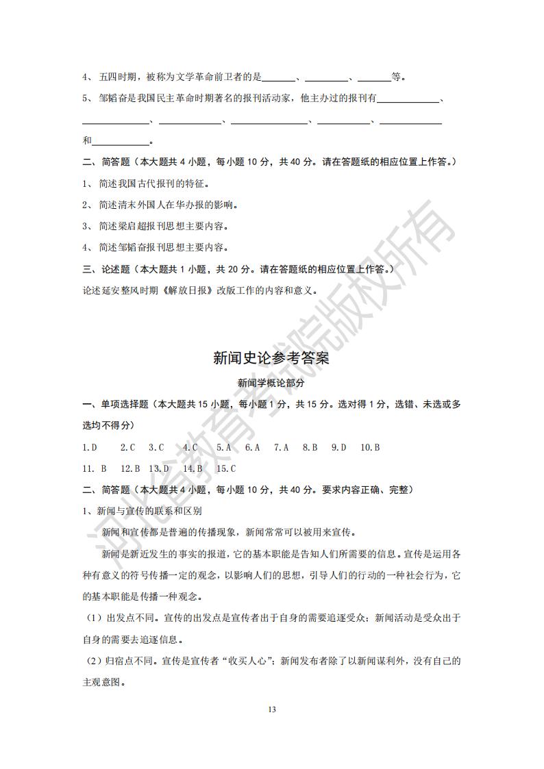 河北省普通高等學(xué)校專升本考試新聞史論模擬試卷及參考答案