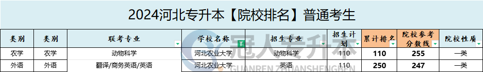 河北農業大學專升本動物科學專業專升本分數線為:255分。