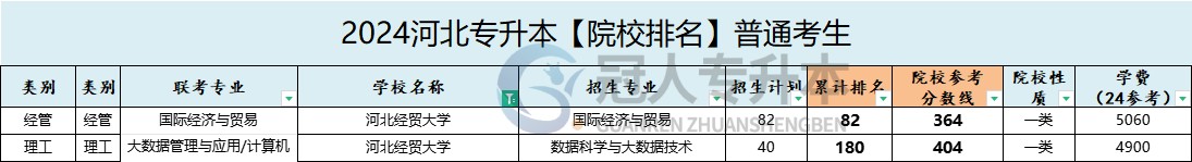 摘要:2025年河北經貿大學專升本考試各招生專業的錄取分數線可以參考近幾年河北經貿大學專升本分數線數據。