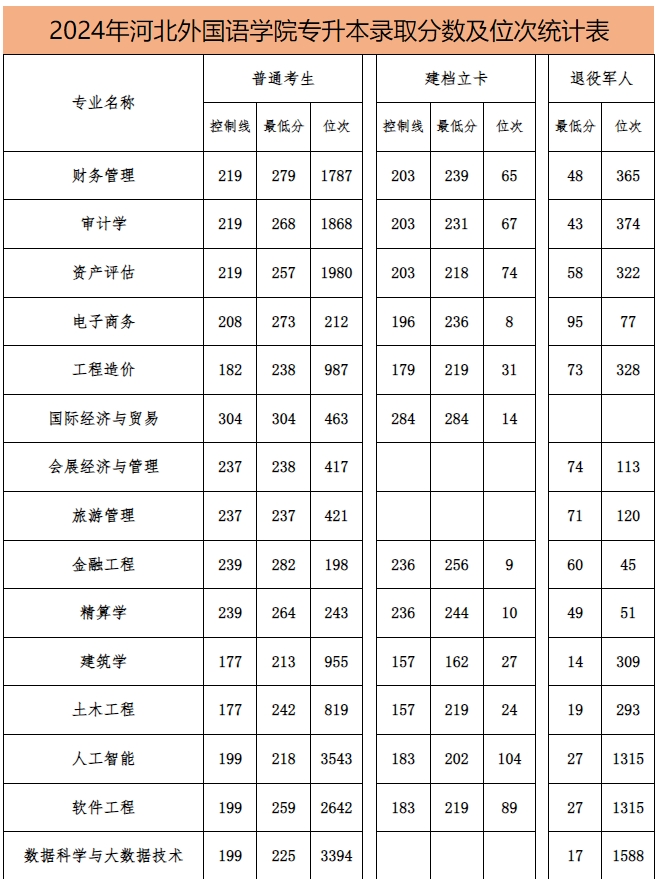 文章標題:2024年河北外國語學院專升本錄取分數及位次統計表