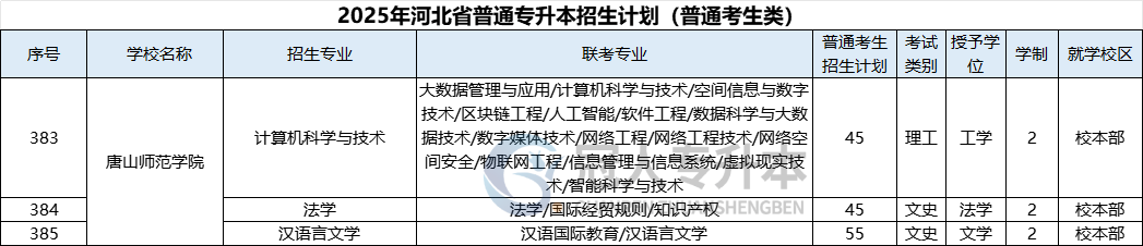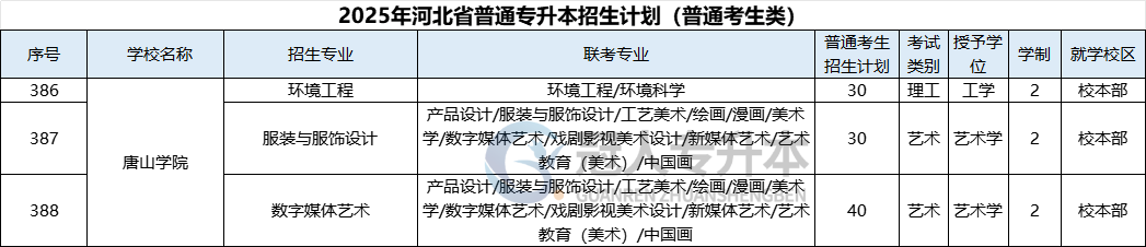 2025年河北省普通專升本唐山學院專升本招生計劃已公布,參加2025年河北專升本考試的考生請查看下表2025年唐山學院專升本招生計劃信息。