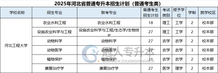 2025年河北省普通專升本河北工程大學專升本招生計劃已公布,參加2025年河北專升本考試的考生請查看下表2025年河北工程大學專升本招生計劃信息。