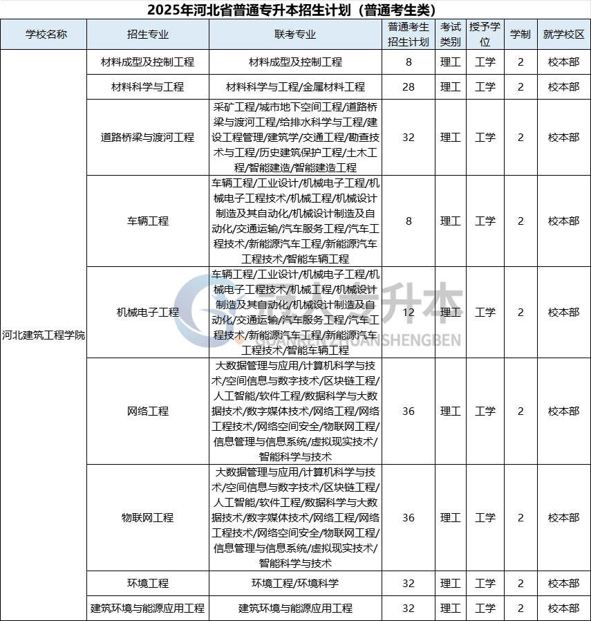 2025年河北省普通專升本河北建筑工程學院專升本招生計劃已公布,參加2025年河北專升本考試的考生請查看下表2025年河北建筑工程學院專升本招生計劃信息。