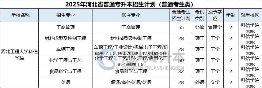 2025年河北省普通專升本河北工程大學科信學院專升本招生計劃已公布,參加2025年河北專升本考試的考生請查看下表2025年河北工程大學科信學院專升本招生計劃信息。