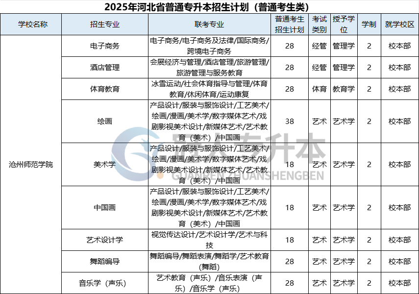 2025年河北省普通專升本滄州師范學院專升本招生計劃已公布,參加2025年河北專升本考試的考生請查看下表2025年滄州師范學院專升本招生計劃信息。