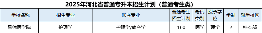 2025年河北省普通專升本承德醫學院專升本招生計劃已公布,參加2025年河北專升本考試的考生請查看下表2025年承德醫學院專升本招生計劃信息。