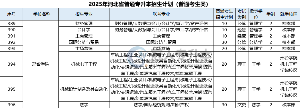 以上信息是“2025年河北省專升本邢臺學院招生計劃”的相關介紹。河北省專升本考生可以將我們加入到收藏夾,我們會持續更新河北省普通專升本考試方面的相關資訊,政策,各院校招生計劃,分數線,錄取率等信息。