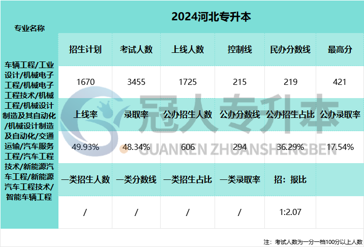 2025年河北省專升本考試將與2025年4月19日進行,河北專升本考試新能源汽車工程技術專業(yè)考試人數還沒有公布,參加2025年河北專升本考試的考生可以參考下表中2024年新能源汽車