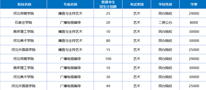 民辦院校4所:河北傳媒學院、燕京理工學院、河北美術學院、河北外國語學院