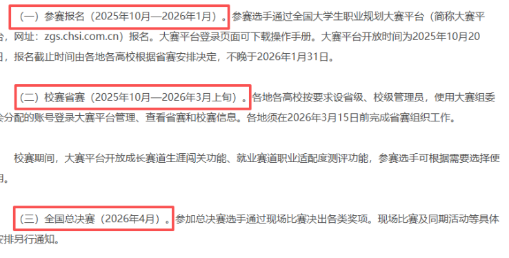 寶子們,報名時間截止到26年1月哦,還有很長的時間~全國總決賽在26年4月進行,大三的寶子可能趕不上,大一、大二的寶子要抓緊時間沖咯~