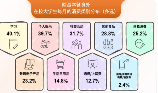 數據顯示,除基本餐食之外,生活費主要花銷為: