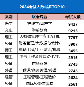 2024年河北省普通專升本考試人數最多的10個專業匯總:第一名是醫學類中的護理學/助產學 24年河北專升本考試人數為9427人