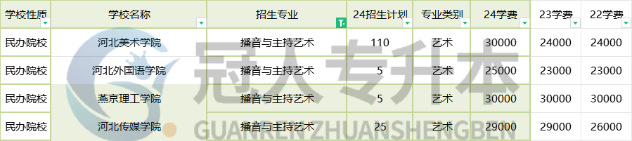 2025年河北專升本考試播音與主持藝術專業招生計劃還沒有公布,參加25年河北專升本考試播音與主持藝術專業的學生可以參考24年的招生院校學費。