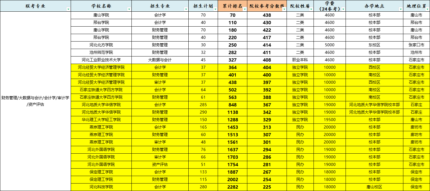 2024年河北專升本會計聯考專業招生院校學費匯總