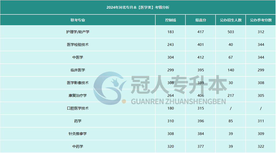 河北專升本醫學類公辦院校分數線:在招生公辦全部9個專業中,僅有1個專業的公辦分數在300分以下,醫學檢驗技術和中醫學均高達344分