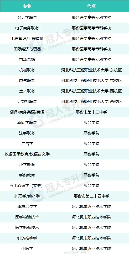 2025年河北省專升本考試邢臺(tái)地區(qū)考點(diǎn)學(xué)校匯總,參加2025年河北專升本考試,想就近在邢臺(tái)地區(qū)考試的考生可以提前了解相關(guān)考點(diǎn)。