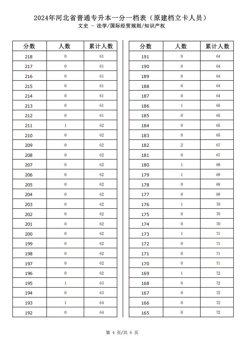 2025年文史類法學(xué)專升本建檔立卡一分一檔表還沒(méi)有公布,參加25年河北省專升本考試的考生可以參考2024年河北省文史類法學(xué)專升本建檔立卡一分一檔表中的數(shù)據(jù)。