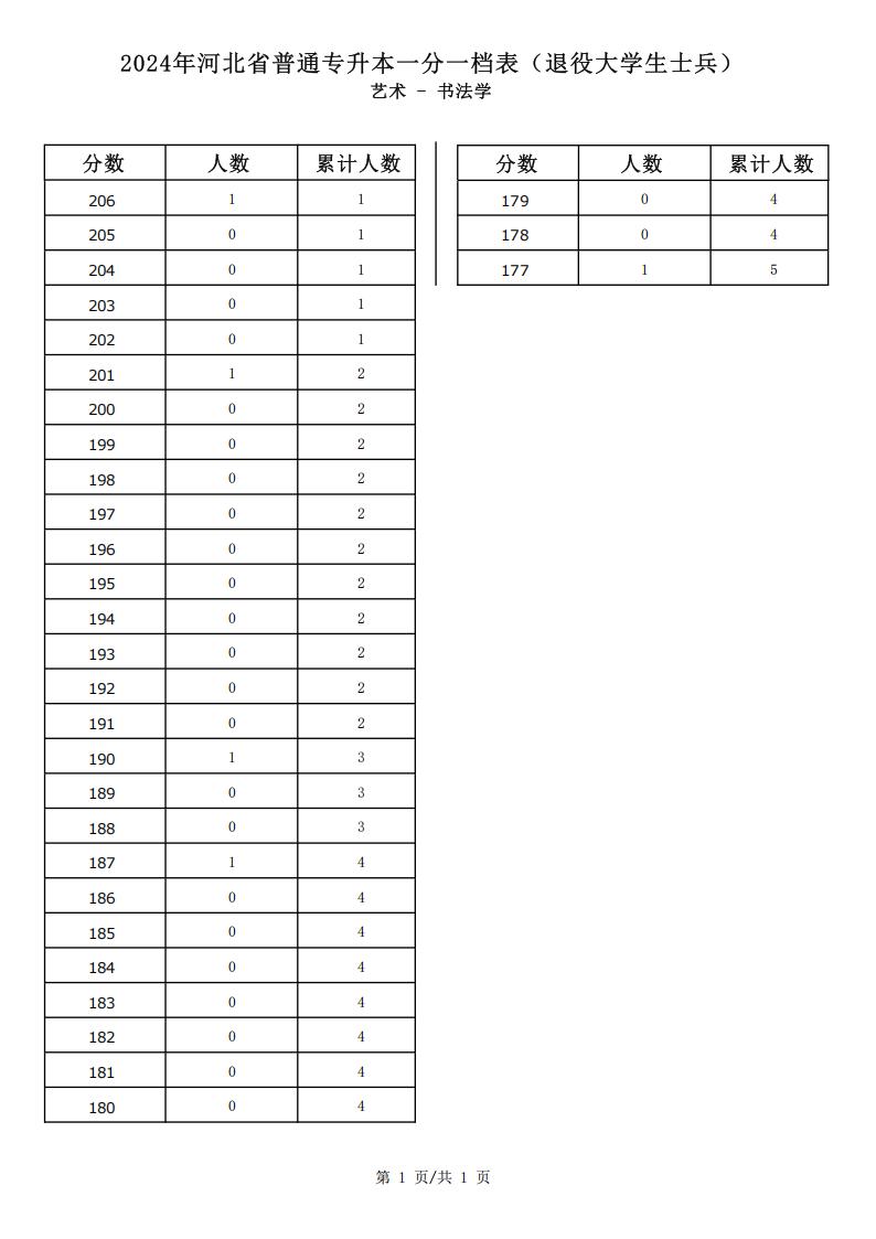 2025年河北藝術類書法學專升本退役士兵一分一檔表還沒有公布,參加25年河北專升本的退役士兵考生可以參考2024年河北省普通專升本書法學退役士兵考生一分一檔表中的數據。
