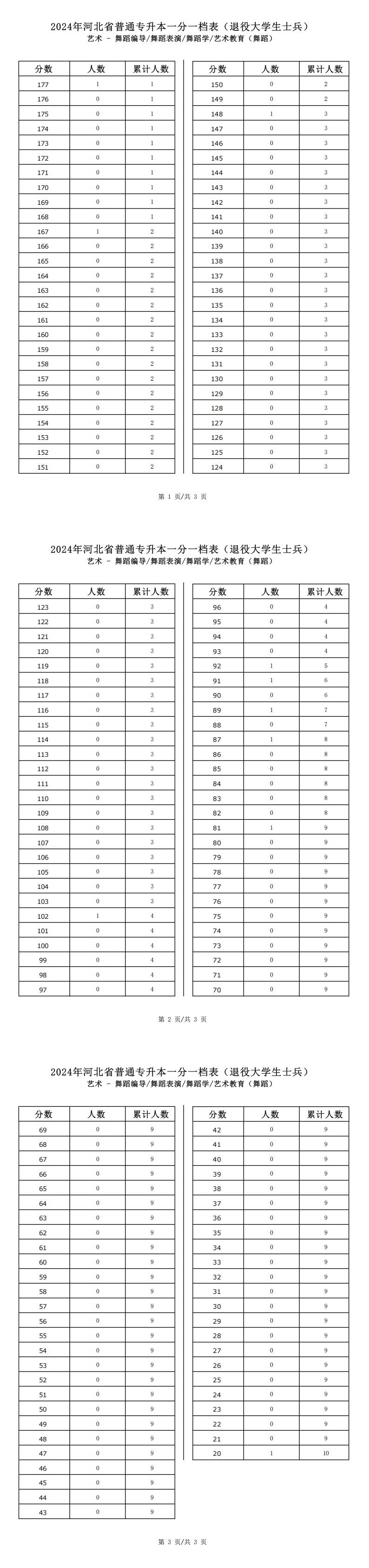 2025年河北藝術類藝術教育(舞蹈)專升本退役士兵考生一分一檔表參考數據本文地址: